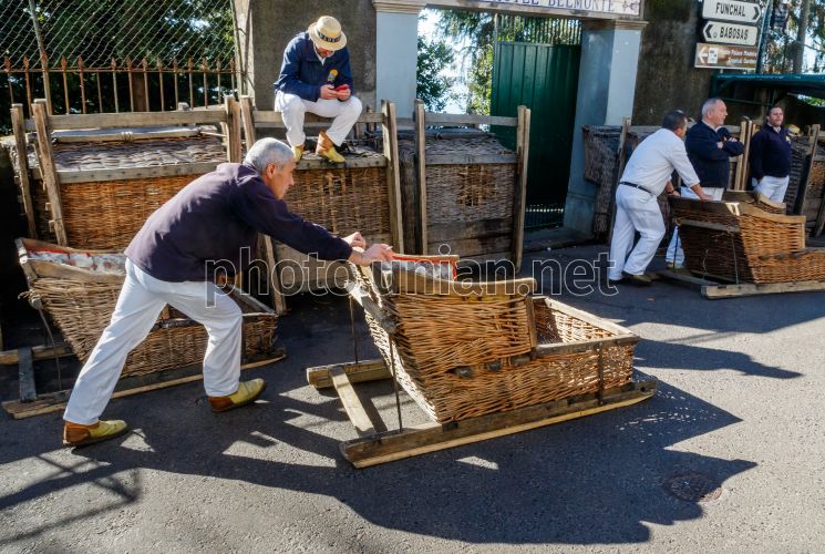 "Саночники" чекають на туристів аби спустити їх по асфальту у плетених корзинах (санях) з пагорба Монте до Лівраменто (район м. Фуншала), на острові Мадейра (Португалія), 8 січня 2026 р. Фото Немеш Янош / УНІАН