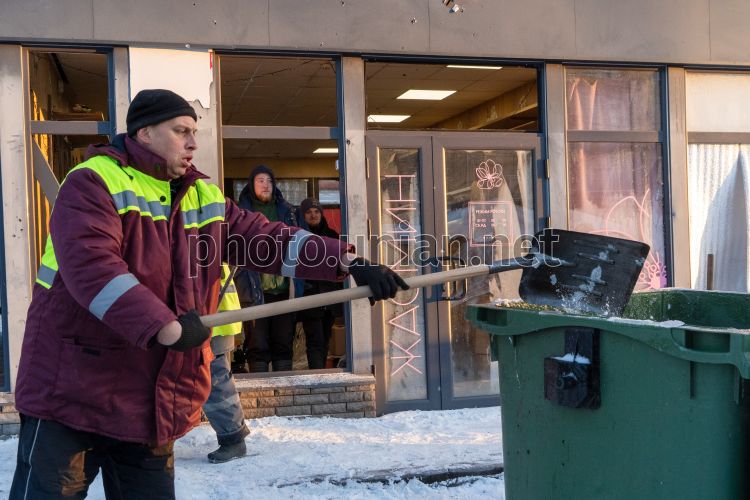 Наслідки удару дрона РФ по ринку в Харкові, 2 лютого 2026 р. Вдень 2 лютого російський безпілотник вдарив по ринку в Слобідському районі Харкова. Постраждали двоє людей, пошкоджено магазини. Фото Марієнко Андрій / УНІАН