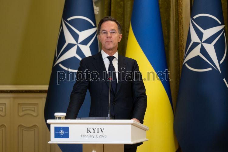 Президент України Володимир Зеленський під час спільного із президентом України Володимиром Зеленським спілкування з журналістами в Києві, 3 лютого 2026 р.