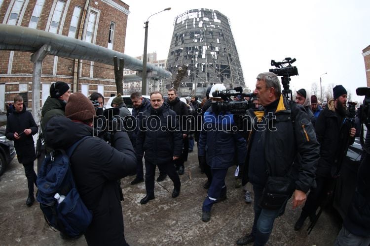 Міністр розвитку громад та територій Олексій Кулеба показав представникам посольств іноземних держав наслідки російського ракетного удару, завданого підприємству критичної енергетичної інфраструктури - Дарницькій теплоелектроцентралі (ТЕЦ) у Києві, 4 лютого 2026 г. Фото Ковальчук Віктор / УНІАН