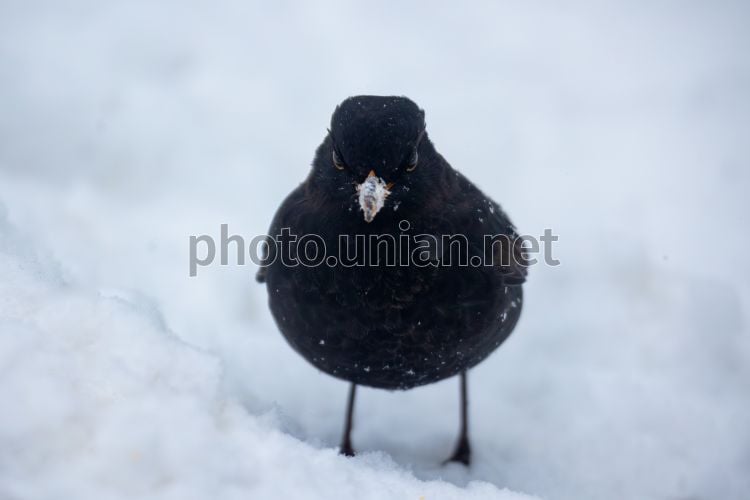 Чорний дрізд (самець) в парку в Києві, 7 лютого 2026 р. Фото УНІАН