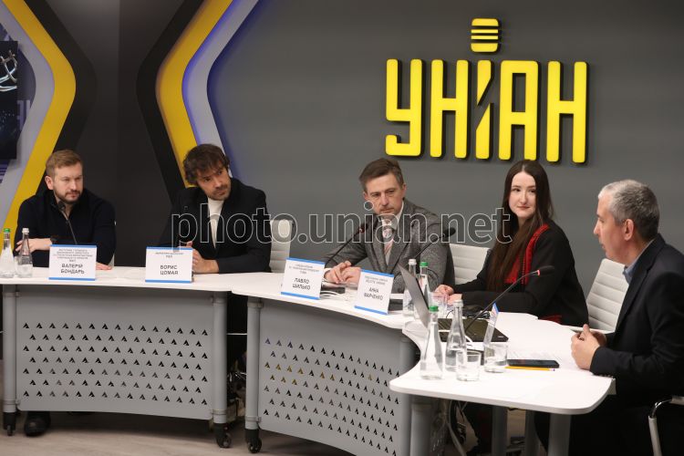 Заступник головного виконавчого директора зі стратегічних маркетингових комунікацій та проектів МХП Валерій Бондарь, маркетинг-директор РІЕЛ Борис Цомая, співзасновник та генеральний продюсер YUNA Павло Шилько, представниця компанії Deloitte Ukraine Анна Марченко та директор з розвитку премії YUNA Ігор Панасов під час церемонії оголошення імен номінантів 15-ї ювілейної Національної музичної премії YUNA 2026, у пресцентрі інформаційного агентства УНІАН в Києві, 10 лютого 2026 р. Під час трансляції церемонії організатори також розповіли про зміни в регламенті премії, нову номінацію "Найкраща нова версія" та специфіку нинішнього сезону YUNA, який є 15-м, ювілейним. Фото Ковальчук Віктор / УНІАН