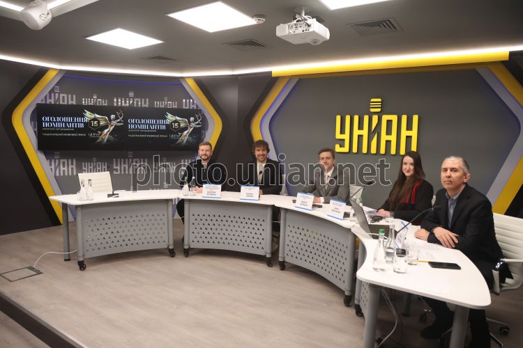 Заступник головного виконавчого директора зі стратегічних маркетингових комунікацій та проектів МХП Валерій Бондарь, маркетинг-директор РІЕЛ Борис Цомая, співзасновник та генеральний продюсер YUNA Павло Шилько, представниця компанії Deloitte Ukraine Анна Марченко та директор з розвитку премії YUNA Ігор Панасов під час церемонії оголошення імен номінантів 15-ї ювілейної Національної музичної премії YUNA 2026, у пресцентрі інформаційного агентства УНІАН в Києві, 10 лютого 2026 р. Під час трансляції церемонії організатори також розповіли про зміни в регламенті премії, нову номінацію "Найкраща нова версія" та специфіку нинішнього сезону YUNA, який є 15-м, ювілейним. Фото Ковальчук Віктор / УНІАН