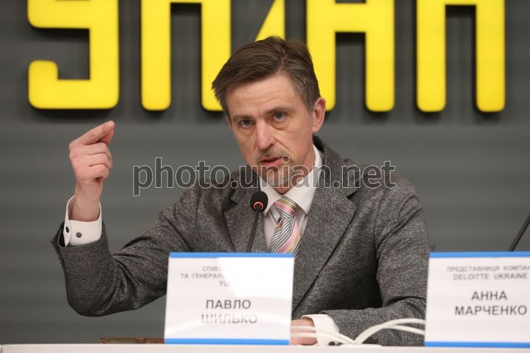 Співзасновник та генеральний продюсер YUNA Павло Шилько під час церемонії оголошення імен номінантів 15-ї ювілейної Національної музичної премії YUNA 2026, у пресцентрі інформаційного агентства УНІАН в Києві, 10 лютого 2026 р. Під час трансляції церемонії організатори також розповіли про зміни в регламенті премії, нову номінацію "Найкраща нова версія" та специфіку нинішнього сезону YUNA, який є 15-м, ювілейним. Фото Ковальчук Віктор / УНІАН