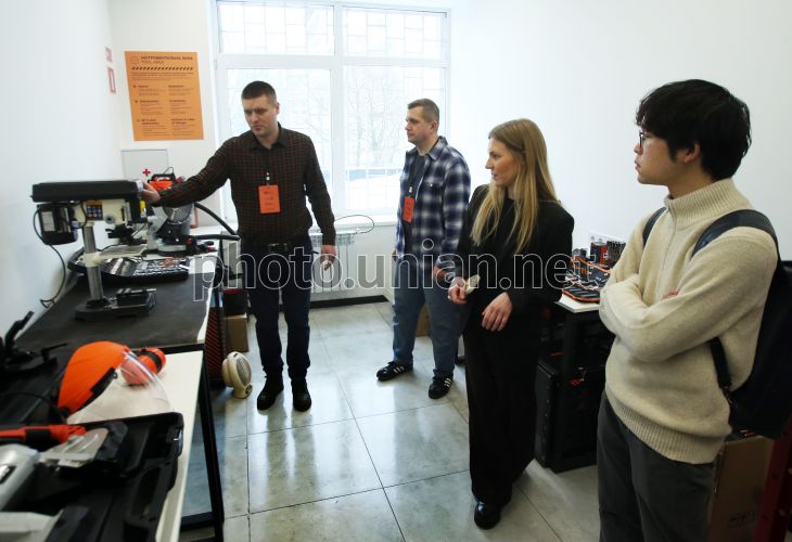 Учасники офіційного відкриття першої в Україні лабораторії робототехніки RoboLab в Києві, 12 лютого 2027 р. Першу в Україні лабораторію робототехніки RoboLab відкрили на базі Київського національного університету будівництва та архітектури (КНУБА). Простір орієнтований на створення роботів, 3D-моделювання та роботу з ШІ. Проєкт реалізується за ініціативи Мінцифри та Асоціації робототехніки для розвитку інженерних рішень. Фото Синиця Олександр / УНІАН