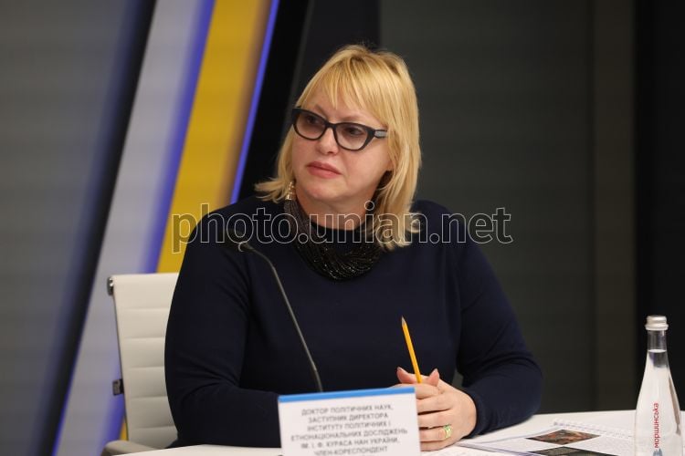 Доктор політичних наук, заступник директора Інституту політичних і етнонаціональних досліджень ім. І.Ф. Кураса НАН України, член-кореспондент НАН України Галина Зеленько під час презентації аналітичного звіту «TikTok як інструмент інформаційного впливу. Дезінформація та маніпуляція свідомістю громадян», в інформаційному агентстві УНІАН, в Києві, 19 лютого 2026 р. У пресцентрі УНІАН відбулася презентація аналітичного звіту, підготовленого Інститутом стратегічних досліджень та безпеки імені Павла Лисянського. Дослідження присвячене аналізу використання платформи TikTok як інструменту когнітивного та інформаційно-психологічного впливу в умовах повномасштабної війни проти України. Фото Ковальчук Віктор / УНІАН
