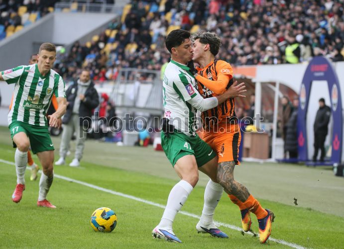 Ігровий момент матчу 17-го туру Чемпіонату України серед команд УПЛ (Прем'єр-ліга) з футболу між ФК "Шахтар" (Донецьк) та ФК «Карпати» (Львів) у Львові, 22 лютого 2026 р. Матч закінчився з рахунком 3:0 на користь ФК "Шахтар" (Донецьк). Фото Кравс Євгеній / УНІАН