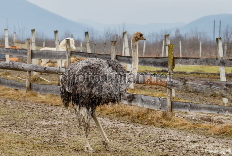 Страус на території контактного зоопарку "Ранчо Хайленд" в селі Липча, урочище "Черять", Хустського району (Закарпатська обл.), 22 лютого 2026 р. Фото Немеш Янош / УНІАН