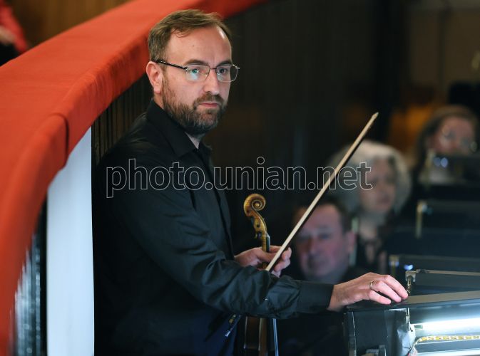 Перша скрипка Львівської опери Олександр Божик перед початком опери «Ріголетто» Джузеппе Верді у Львівській опері, 20 березня 2026 р. Лібрето Франческо Марії П’яве за мотивами драми Віктора Гюго «Король забавляється». “Ріголетто” Дж. Верді – шедевр італійської опери, який зумів здобути світову славу та став класикою жанру. Виконується італійською мовою з українськими субтитрами. Фото Кравс Євгеній / УНІАН
