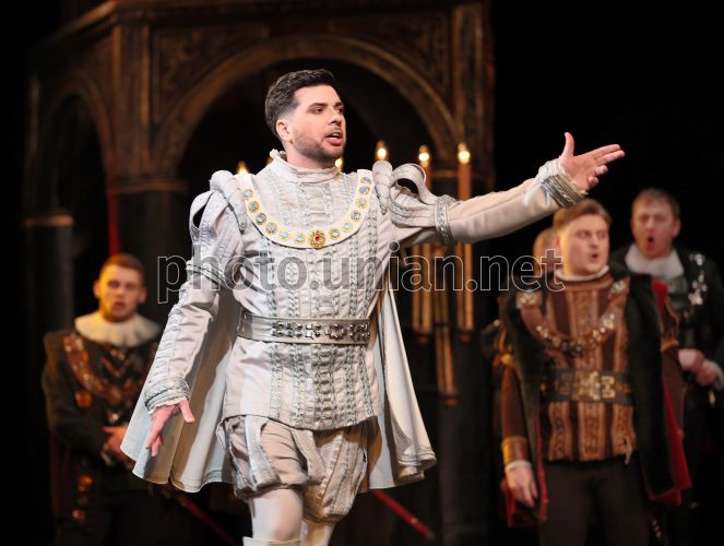 під час опери «Ріголетто» Джузеппе Верді у Львівській опері, 20 березня 2026 р. Лібрето Франческо Марії П’яве за мотивами драми Віктора Гюго «Король забавляється». “Ріголетто” Дж. Верді – шедевр італійської опери, який зумів здобути світову славу та став класикою жанру. Виконується італійською мовою з українськими субтитрами. Фото Кравс Євгеній / УНІАН