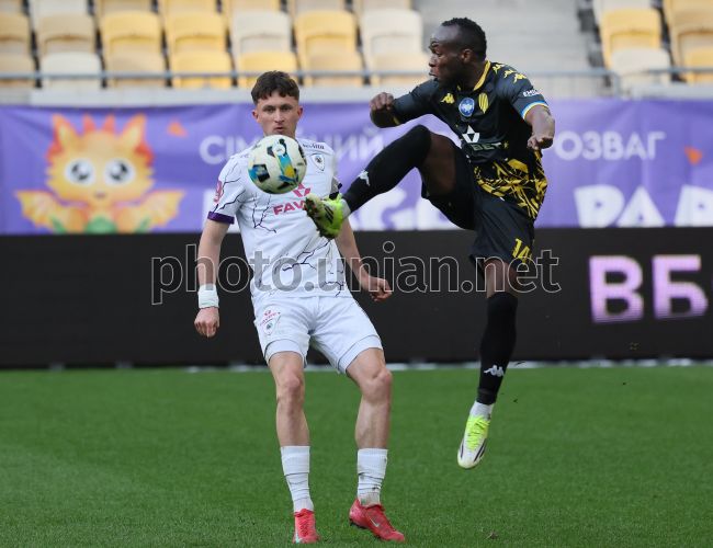Ігровий момент матчу 21-го туру Чемпіонату України серед команд УПЛ (Прем'єр-ліга) з футболу (сезон 2025/26) між ФК «Рух» (Львів) та ФК «ЛНЗ» (Черкаси), у Львові, 21 березня 2026 р. Матч закінчився з рахунком 1:2 на користь ФК "ЛНЗ". Фото Кравс Євгеній / УНІАН
