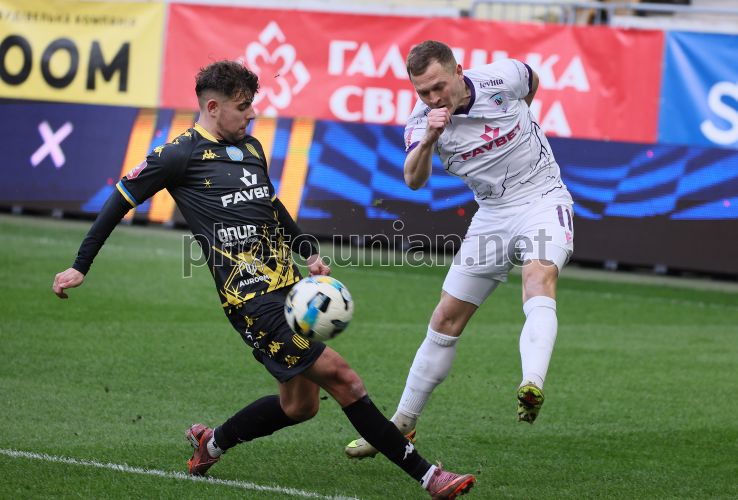 Ігровий момент матчу 21-го туру Чемпіонату України серед команд УПЛ (Прем'єр-ліга) з футболу (сезон 2025/26) між ФК «Рух» (Львів) та ФК «ЛНЗ» (Черкаси), у Львові, 21 березня 2026 р. Матч закінчився з рахунком 1:2 на користь ФК "ЛНЗ". Фото Кравс Євгеній / УНІАН
