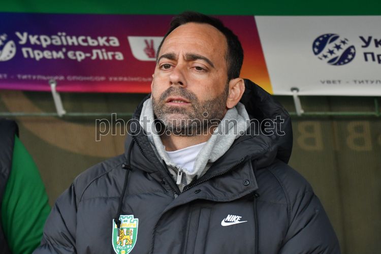 Головний тренер ФК "Карпати" (Львів) Франсіско Фернандес під час матчу 21-го туру Чемпіонату України серед команд УПЛ (Прем'єр-ліга) з футболу (сезон 2025/26) між ФК «Карпати» (Львів) та ФК «Оболонь» (Київ), у Львові, 22 березня 2026 р. Матч закінчився з рахунком 4:0 на користь ФК "Карпати". Фото Тис Микола / УНІАН