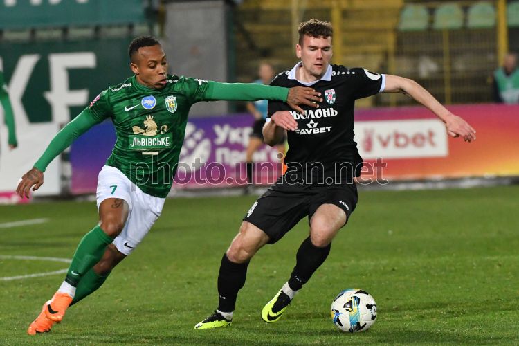 Ігровий момент матчу 21-го туру Чемпіонату України серед команд УПЛ (Прем'єр-ліга) з футболу (сезон 2025/26) між ФК «Карпати» (Львів) та ФК «Оболонь» (Київ), у Львові, 22 березня 2026 р. Матч закінчився з рахунком 4:0 на користь ФК "Карпати". Фото Тис Микола / УНІАН