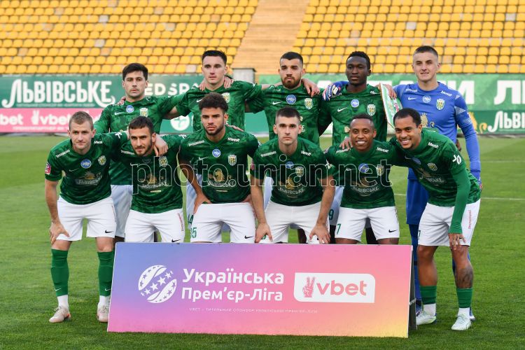 Гравці ФК "Карпати" перед початком матчу 21-го туру Чемпіонату України серед команд УПЛ (Прем'єр-ліга) з футболу (сезон 2025/26) між ФК «Карпати» (Львів) та ФК «Оболонь» (Київ), у Львові, 22 березня 2026 р. Матч закінчився з рахунком 4:0 на користь ФК "Карпати". Фото Тис Микола / УНІАН