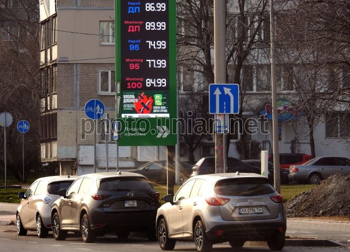 Інформаційне табло з цінами на пальне на АЗС у Києві, 23 березня 2026 р. В Україні на тлі війни на Близькому Сході зросли ціни на пальне. Основними причинами цього є коливання світових цін на нафту, геополітичні ризики і валюта. Дефіциту пального в країні зараз немає, повідомив Комітет з питань енергетики і ЖКГ Верховної Ради. Фото Синиця Олександр / УНІАН