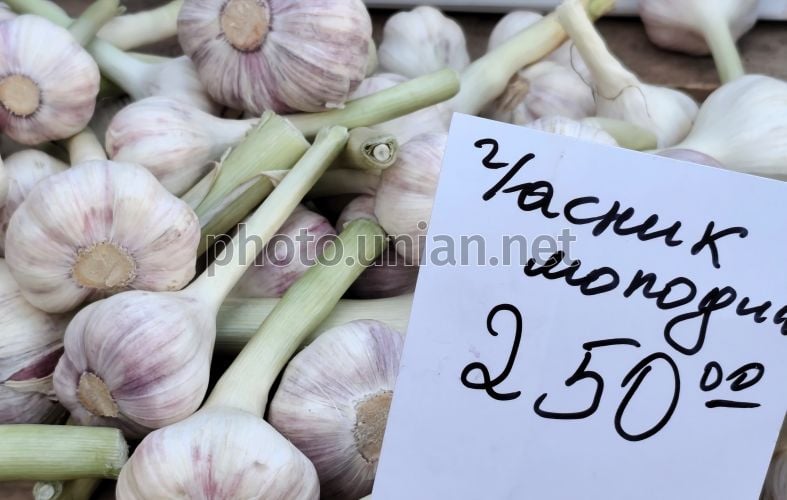 Молодий часник на одному з ринків у Києві, 26 березня 2026 р. Фото Синиця Олександр / УНІАН