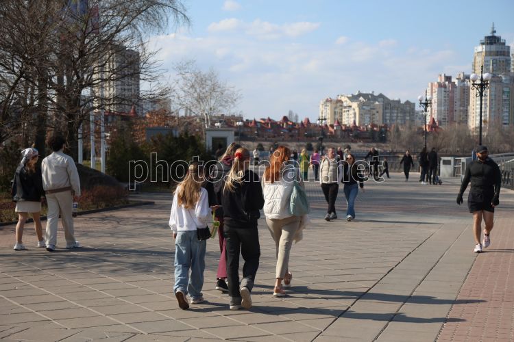 Люди на Оболонській набережній, у Києві, 27 березня 2026 р. Фото Ковальчук Віктор / УНІАН