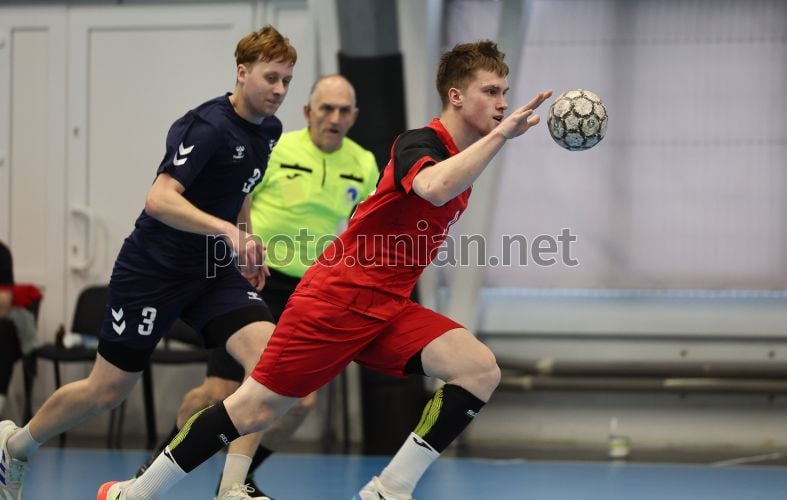Ігровий момент матчу Чемпіонату України з гандболу (Чоловіки. Суперліга. 11 тур) між ГК «Спартак» (Київ) та ГК «Хмельницький», у Львові, 27 березня 2026 р. Матч закінчився з рахунком 43:37 на користь киян. Фото Кравс Євгеній / УНІАН