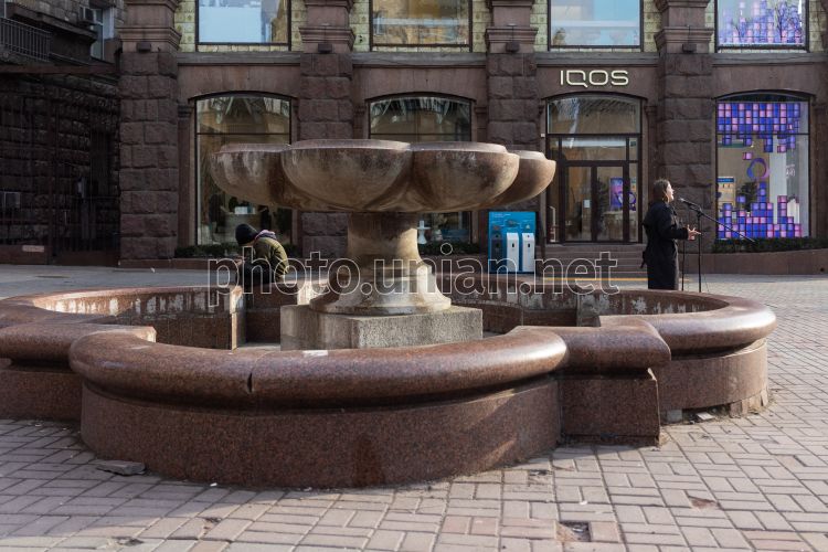 Вуличний музикант біля фонтану в центрі Києва, 29 березня 2026 р. Фото УНІАН / УНІАН
