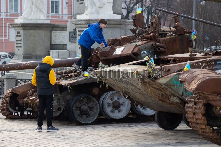 Знищена російська військова техніка на Михайлівській площі у Києві, 29 березня 2026 р. Фото УНІАН