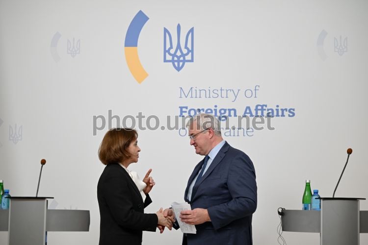 Міністр закордонних справ України Андрій Сибіга та міністр закордонних справ Республіки Болгарія Надежда Нейнскі під час спільної пресконференції в Києві, 30 березня 2026 р. Фото Ратинський В'ячеслав / УНІАН