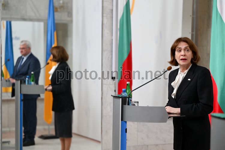 Міністр закордонних справ України Андрій Сибіга та міністр закордонних справ Республіки Болгарія Надежда Нейнскі під час спільної пресконференції в Києві, 30 березня 2026 р. Фото Ратинський В'ячеслав / УНІАН