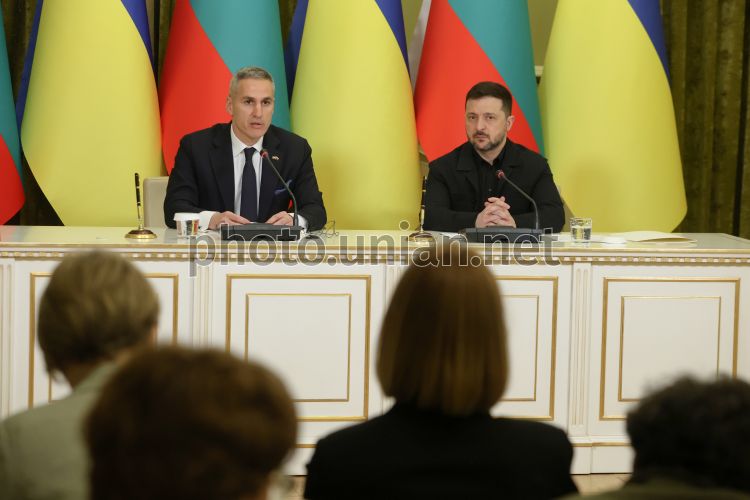 Президент України Володимир Зеленський та виконувач обов'язків прем'єр-міністра Болгарії Андрей Гюров під час спільної пресконференції, у Києві, 30 березня 2026 р. Фото Ковальчук Віктор / УНІАН