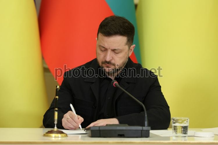 Президент України Володимир Зеленський під час спільної пресконференції з виконувачем обов'язків прем'єр-міністра Болгарії Андреєм Гюровим, у Києві, 30 березня 2026 р. Фото Ковальчук Віктор / УНІАН
