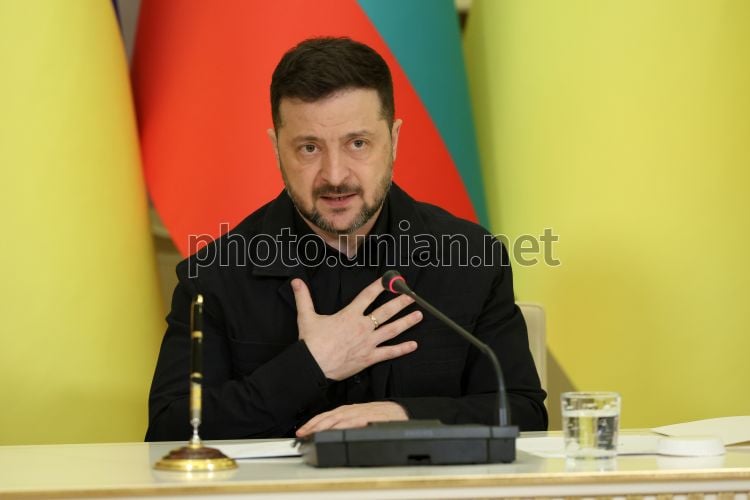 Президент України Володимир Зеленський під час спільної пресконференції з виконувачем обов'язків прем'єр-міністра Болгарії Андреєм Гюровим, у Києві, 30 березня 2026 р. Фото Ковальчук Віктор / УНІАН