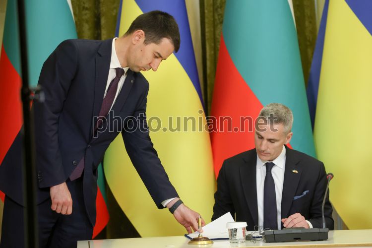 Виконувач обов'язків прем'єр-міністра Болгарії Андрей Гюров під час спільної пресконференції з президентом України Володимиром Зеленським, у Києві, 30 березня 2026 р. Президент України та виконувач обов'язків прем'єр-міністра Болгарії підписали угоду про співпрацю у сфері безпеки. Фото Ковальчук Віктор / УНІАН