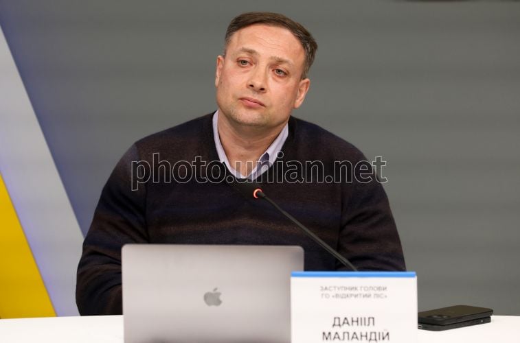 Заступник голови ГО «Відкритий ліс» Данііл Маландій під час пресконференції на тему: "Реальний стан справ у лісовій галузі України", в інформаційному агентстві "УНІАН", у Києві, 3 квітня 2026 р. Фото Ковальчук Віктор / УНІАН