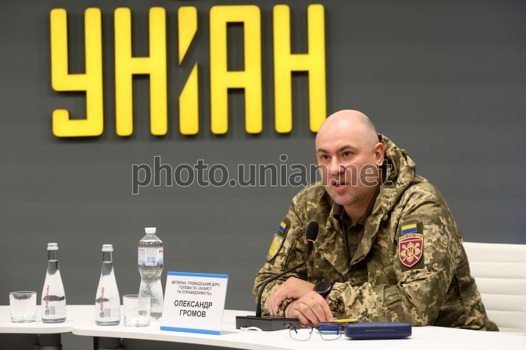 Ветеран та громадський діяч, голова ГО «Захист та Справедливість» Олександр Громов під час пресконференції на тему: "Реальний стан справ у лісовій галузі України", в інформаційному агентстві "УНІАН", у Києві, 3 квітня 2026 р. Фото Ковальчук Віктор / УНІАН