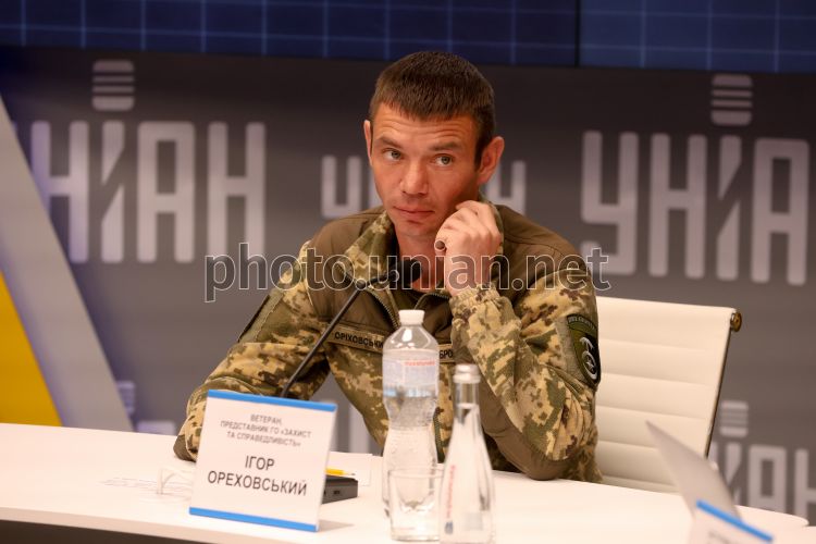 Ветеран та представник ГО «Захист та Справедливість» Ігор Оріховський під час пресконференції на тему: "Реальний стан справ у лісовій галузі України", в інформаційному агентстві "УНІАН", у Києві, 3 квітня 2026 р. Фото Ковальчук Віктор / УНІАН