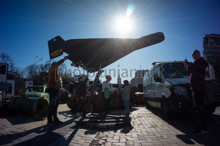 Дрон "Герань-2" на виставці знищеної російської військової техніки на Михайлівській площі у Києві, 5 квітня 2026 р. Фото УНІАН