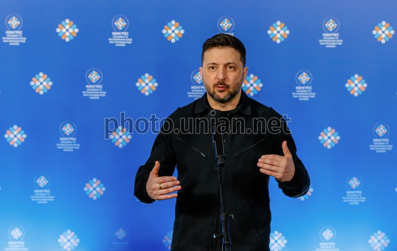 Президент України Володимир Зеленський спілкується з журналістами після Конгресу місцевих та регіональних влад при Президентові України, в Ужгороді, 9 квітня 2026 р. Фото Немеш Янош / УНІАН