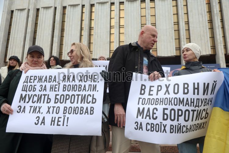 Учасники акції на підтримку Сергія Кузнєцова біля будівлі Українського дому, де проходив круглий стіл на тему: "Nord Stream: газопровід, що приніс війну і досі розколює Європу", в Києві, 9 квітня 2026 р. Фото Ковальчук Віктор / УНІАН
