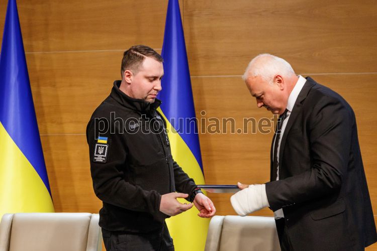 Кирило Буданов вручає грамоту єпископу ЗРЦ Олександру Зан-Фабіану