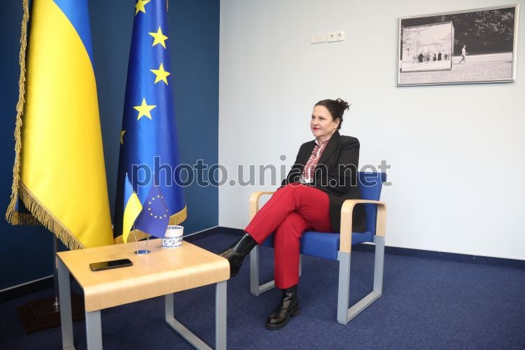 Посол Європейського Союзу в Україні Катаріна Матернова під час інтерв'ю у Києві, 10 квітня 2026 р. Фото Ковальчук Віктор / УНІАН