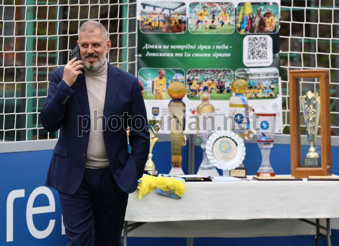Віцепрезидент УАФ Олександр Шевченко під час відкриття футбольного майданчика «ФІФА Арена», у Львові, 15 квітня 2026 р. У Львові відкрили перший в Україні футбольний мінімайданчик у межах глобальної ініціативи «FIFA Arena». Його облаштували на території Центру опіки сиріт Львівської архиєпархії Української Греко-Католицької Церкви. Фото Кравс Євгеній / УНІАН