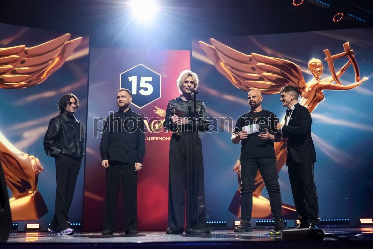 Учасники українського гурту Ziferblat Федор Ходаков (барабанщик), Даниїл Лещинський (соліст) та Валентин Лещинський (гітарист) під час 15-ї церемонії нагородження Національної музичної премії YUNA, у Києві, 15 квітня 2026 р. На урочистому ювілейному заході були оголошені переможці у 14 номінаціях. Ziferblat став «Найкращим рок-гуртом» за версією премії YUNA. Фото Горлушко Вальдемар / УНІАН