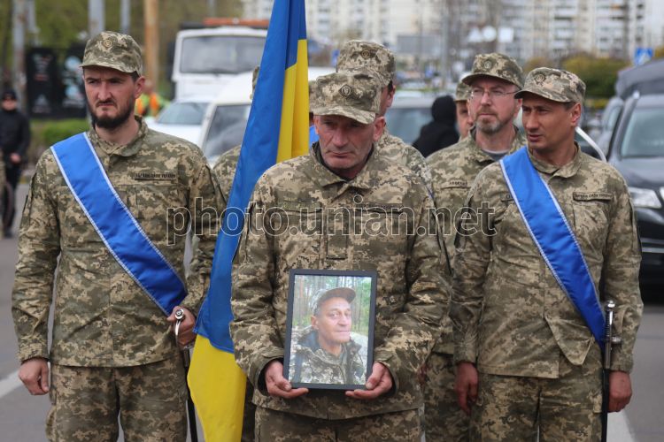 Церемонія прощання з кінорежисером, військовослужбовцем Ігорем Малаховим в Києві, 21 квітня 2026 р. На фронті загинув кінорежисер Ігор Малахов, він з 2023 року вважався зниклим безвісти. Малахов загинув 29 грудня 2023 року в боях під Авдіївкою біля села Степове Донецької області. Ідентифікували полеглого за ДНК. Фото Ковальчук Віктор / УНІАН