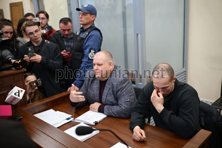 Адвокат Михайло Баховський та один з патрульних поліцейських, який залишив місце теракту, Михайло Дробницький під час засідання Печерського суду по обранню йому запобіжного заходу, у Києві, 21 квітня 2026 року. У Києві Печерський суд обрав запобіжний захід двом патрульним поліцейським, яким інкримінують службову недбалість під час теракту в Києві. Серед підозрюваних — патрульна поліцейська, яка працює від 2015 року, та її колега 27-річний поліцейський. У залі суду патрульний відмовився коментувати інцидент. Прокуратура вимагатиме для 27-річного Михайла Д. тримання під вартою. Захист проситиме — про домашній арешт. 18 квітня у Києві стався теракт: озброєний чоловік відкрив стрілянину по людях.Згодом у Мережі з’явилося відео, на якому видно, як патрульні залишають місце події, не надавши допомоги цивільним. Цих співробітників відсторонено від служби, їм оголошено підозру. Триває службове розслідування. Фото Ратинський В'ячеслав / УНІАН