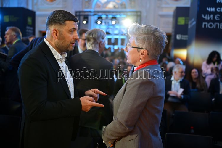 Колишній прем'єр-міністр України Володимир Гройсман та Надзвичайний і Повноважний Посол Канади в Україні Наталка Цмоць під час 18-го щорічного Київського Безпекового Форуму на тему «Морок чи світанок: чи є світло попереду?», 23 квітня 2026 р. Фото Ратинський В'ячеслав / УНІАН