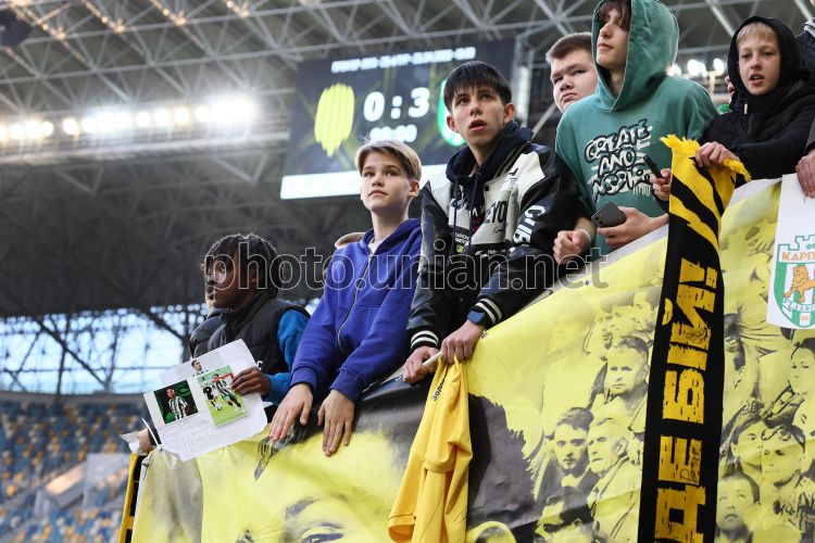Вболівальники на трибунах під час матчу 25-го туру Чемпіонату України серед команд УПЛ (Прем'єр-ліга) з футболу між ФК «Рух» (Львів) – ФК «Карпати» (Львів), на стадіоні «Арена Львів», 25 квітня 2026 р. Матч закінчився з рахунком 0:3 на користь ФК "Карпати". Фото Кравс Євгеній / УНІАН