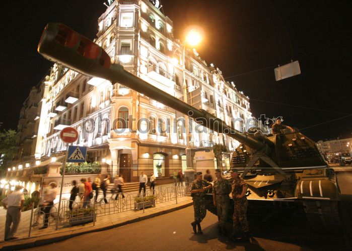 Колона механізованої техніки, яка візьме участь у військовому параді на честь 17-ї річниці незалежності України, проходить центром Києва у вівторок, 19 серпня 2008 р. Фото УНІАН