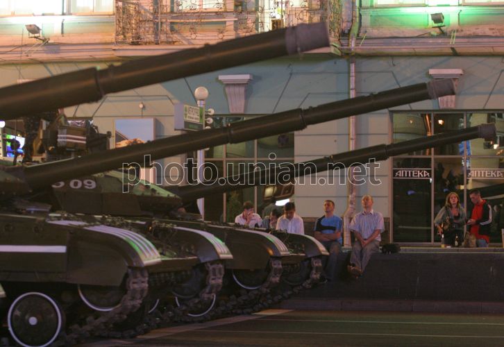 Колона механізованої техніки, яка візьме участь у військовому параді на честь 17-ї річниці незалежності України, проходить центром Києва у вівторок, 19 серпня 2008 р. Фото УНІАН