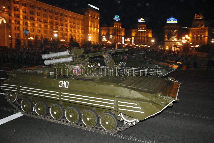 Колона механізованої техніки, яка візьме участь у військовому параді на честь 17-ї річниці незалежності України, проходить центром Києва у вівторок, 19 серпня 2008 р. Фото Євгена Орловського / УНІАН