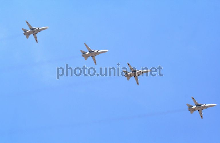 Ланка військових літаків пролітає над центром Києва під час репетиції військового параду на честь Дня Незалежності України, у п’ятницю, 22 серпня 2008 р. Фото УНІАН