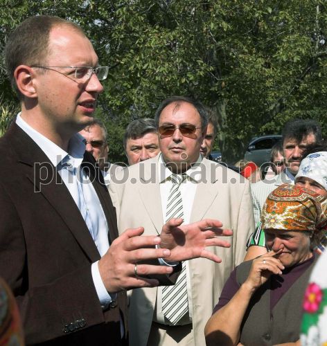 Голова Верховної Ради України Арсеній Яценюк, лворуч. розмовляє з місцевими жителями, у с. Клембівка, Ямпільського р-ну, у середу, 10 вересня 2008 р. Цього дня Голова Верховної Ради України відвідав з робочою поїздкою Вінницьку область. У с. Клембівка Ямпільського району Яценюк оглянув поле цукрових буряків і ознайомився з проблемами цукрової галузі. Також у цьому селі він провів зустріч з керівниками органів місцевого самоврядування, виконавчої влади районів, що постраждали від повені. У Ямпільському районі голова ВР також ознайомиться з перебігом робіт з ліквідації наслідків повені у місті Ямпіль та зустрінеться з жителями потерпілого мікрорайону. Фото Анастасії Сироткіної / POOL / УНІАН